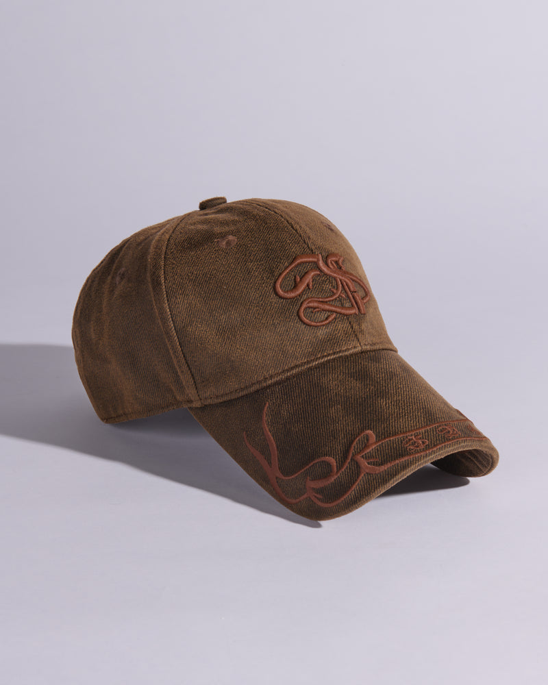 BANNERED WAXED COTTON BASEBALL CAP IN BURNT BROWN
